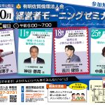 各地区で毎週一回、早朝に開催。純粋倫理の学びと実践を積み重ねる「道場」であり、朝型の生活習慣を体得すると共に、会員同士の交流・情報交換の場として、倫理法人会活動の柱となっています。朝型の生活習慣を体得するとともに、会員同士の交流・情報交換の場も行っています。
