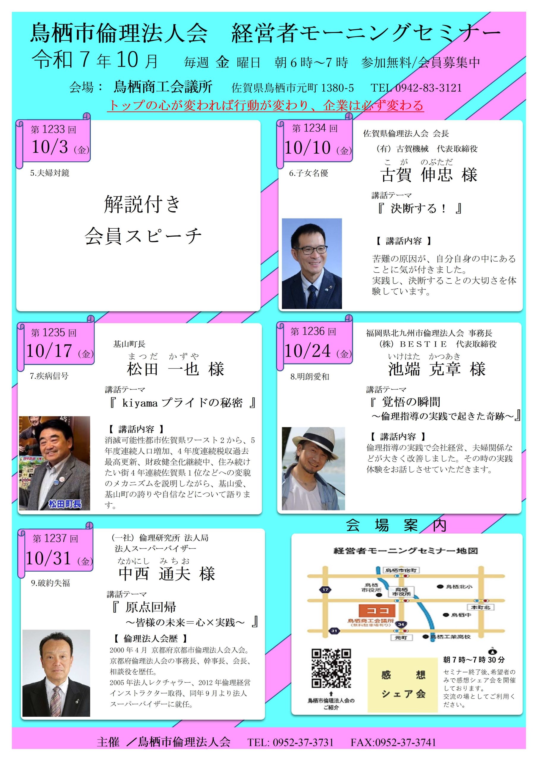 10月度 鳥栖市倫理法人会モーニングセミナーのお知らせ