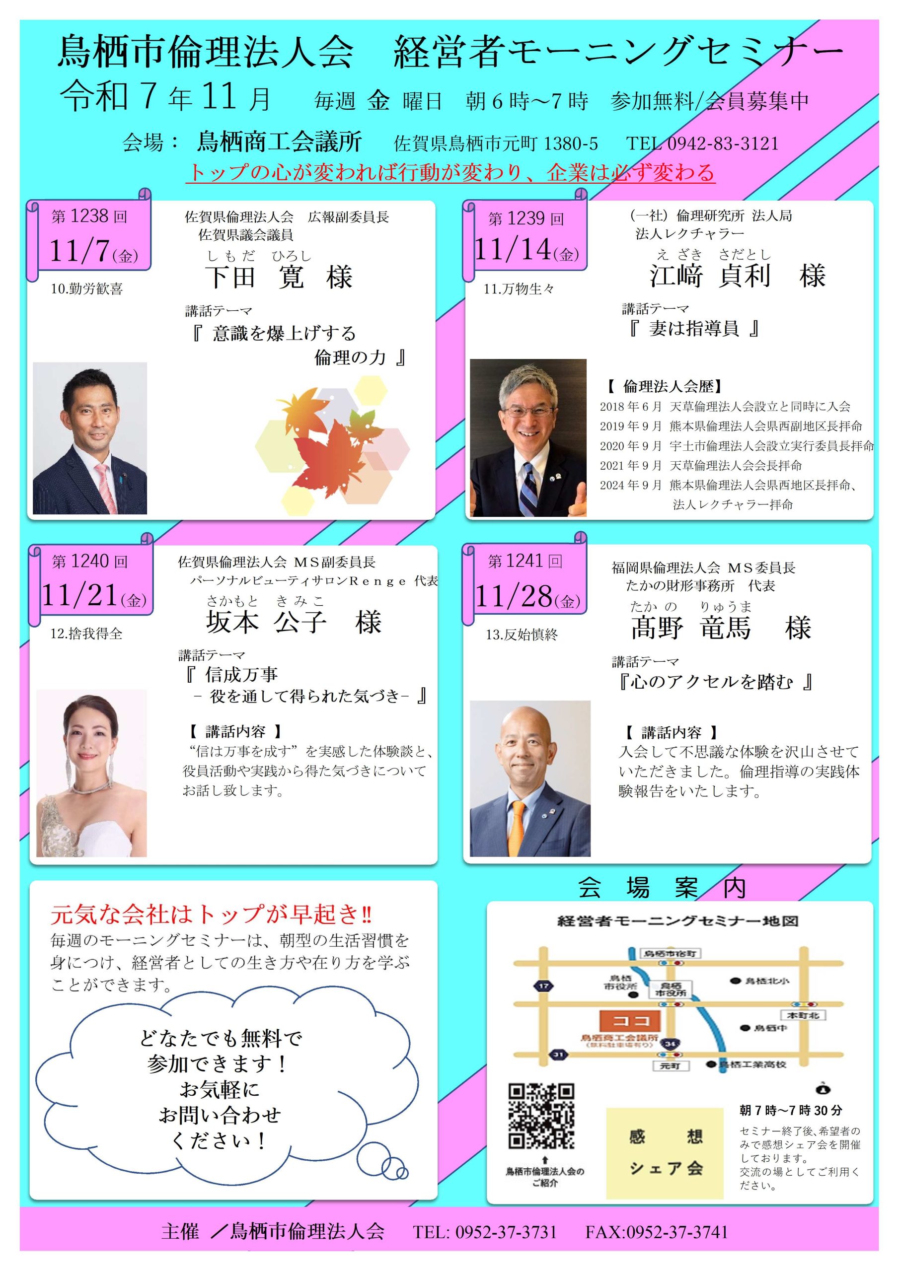 11月度 鳥栖市倫理法人会モーニングセミナーのお知らせ