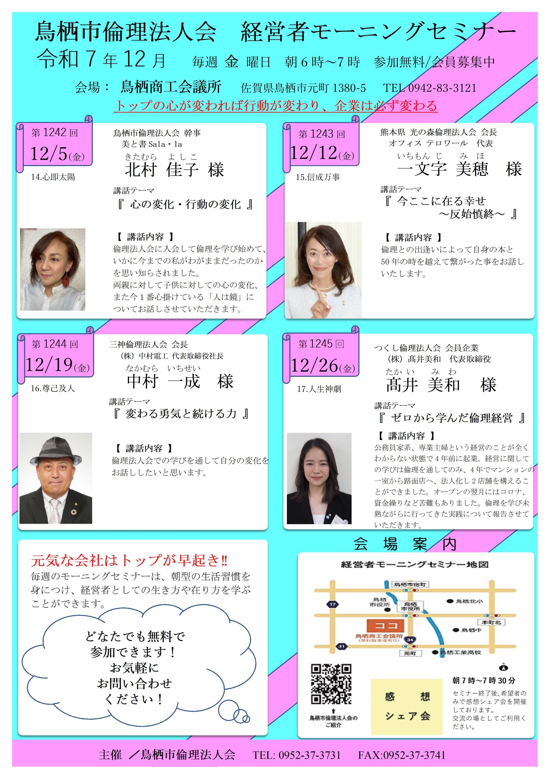 12月度 鳥栖市倫理法人会モーニングセミナーのお知らせ