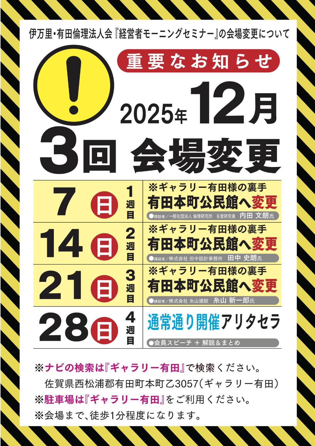 12月伊万里・有田倫理法人会モーニングセミナー予定表