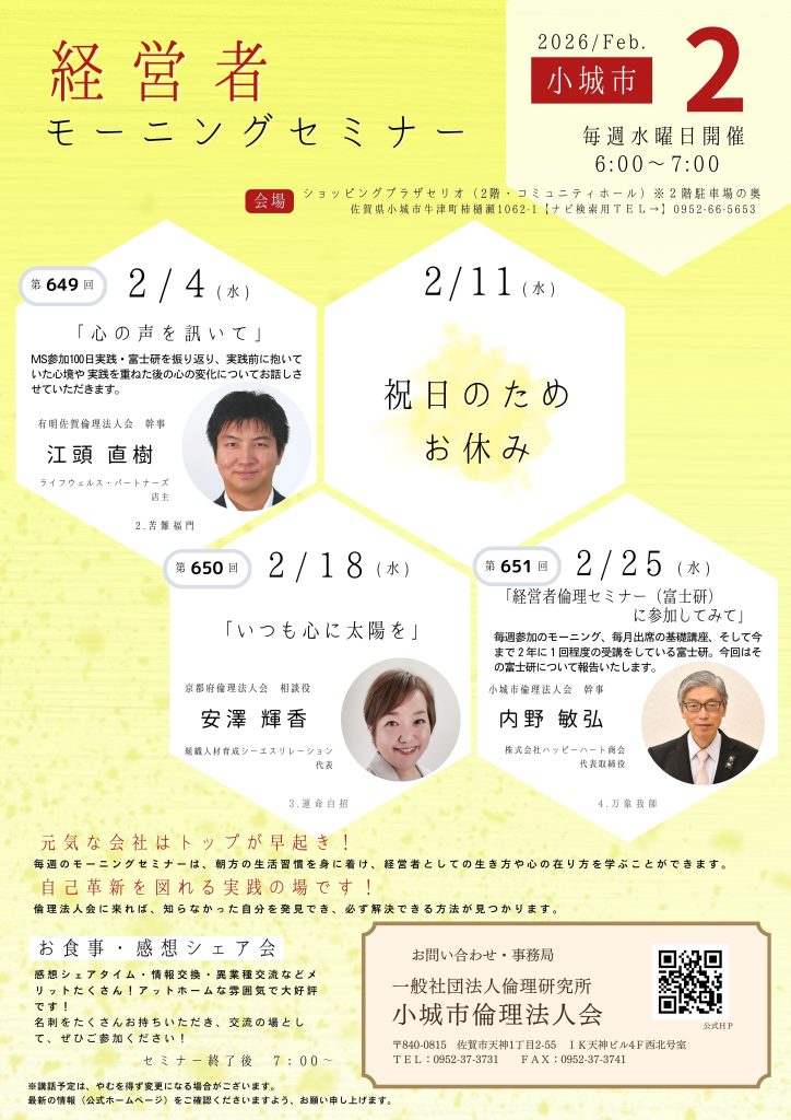 2月小城市倫理法人会モーニングセミナースケジュール