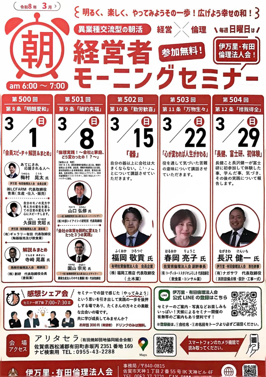 【2026年・3月】伊万里・有田倫理法人会 経営者モーニングセミナー予定表