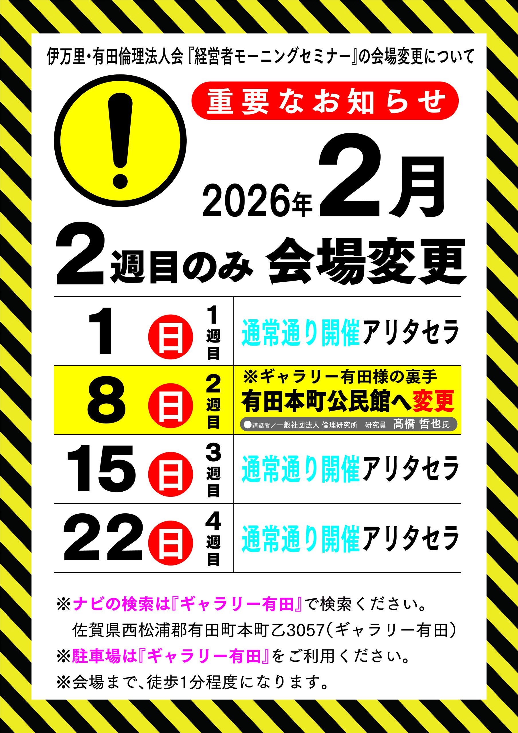 《伊万里・有田倫理法人会》『講話者の変更』のお知らせ 2026年1月25日(日)MS