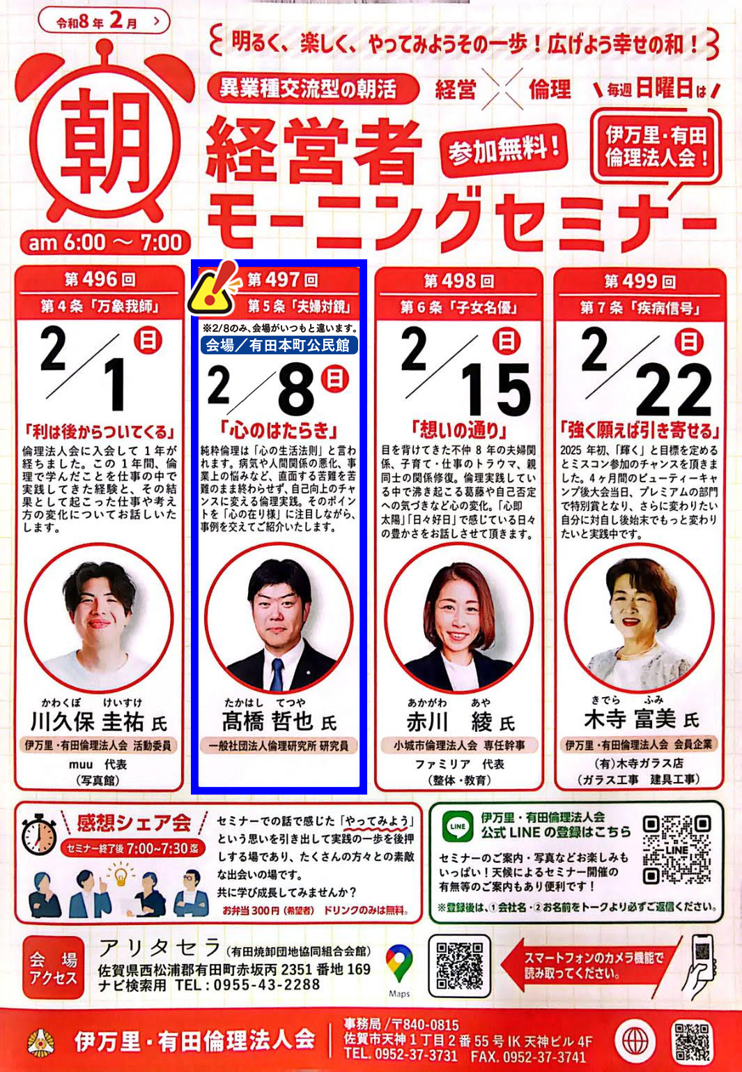 【2026年・2月】伊万里・有田倫理法人会 経営者モーニングセミナー予定表