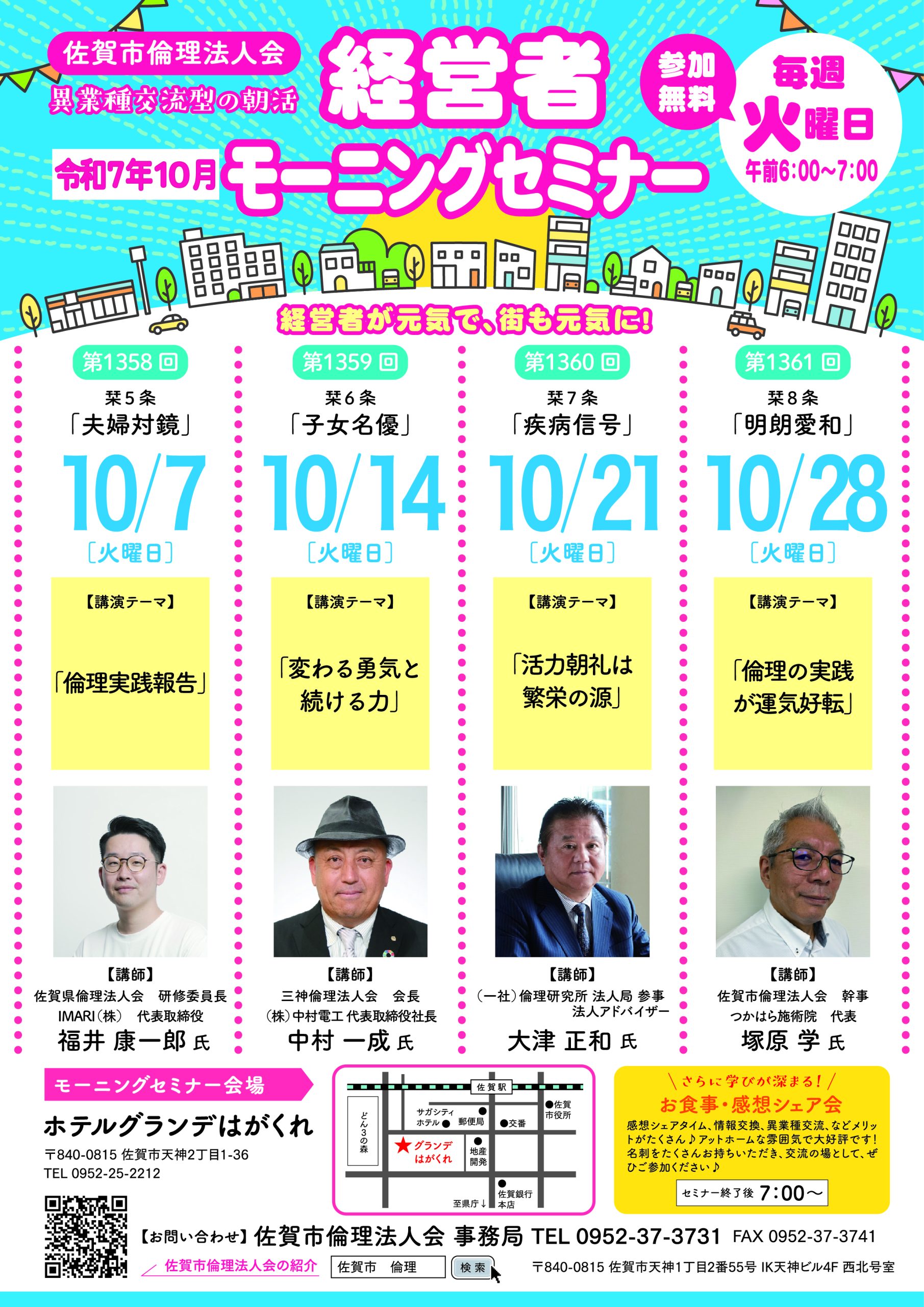 佐賀市倫理法人会 10月のモーニングセミナーのお知らせです。