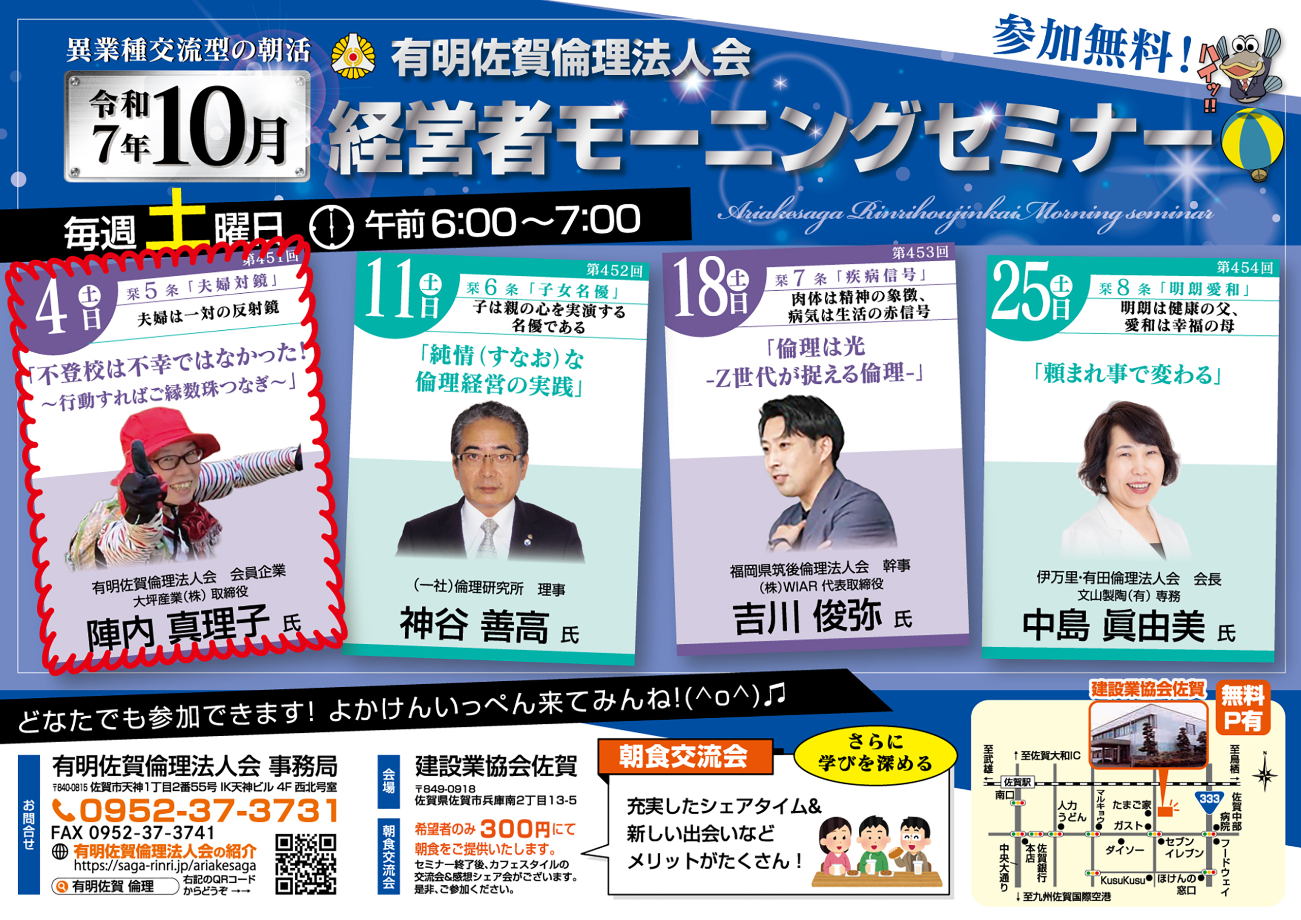 10/4(土)有明佐賀倫理法人会 経営者モーニングセミナーのお知らせ