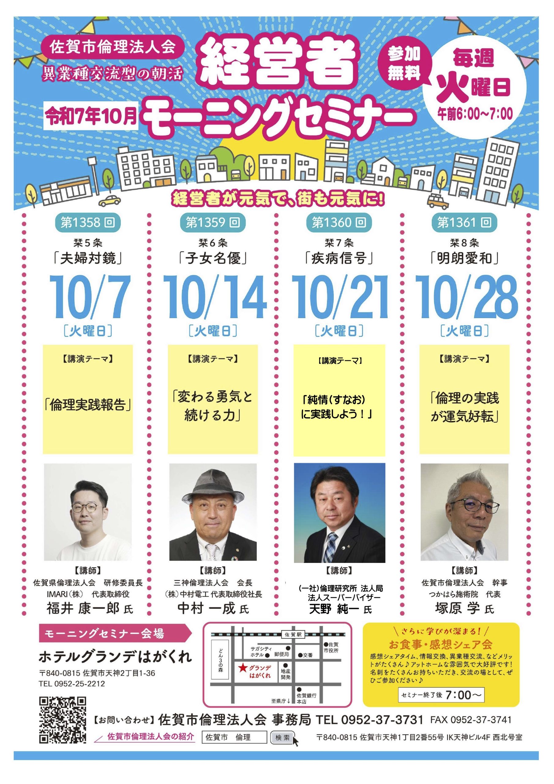 10/18(土)有明佐賀倫理法人会 経営者モーニングセミナーのお知らせ