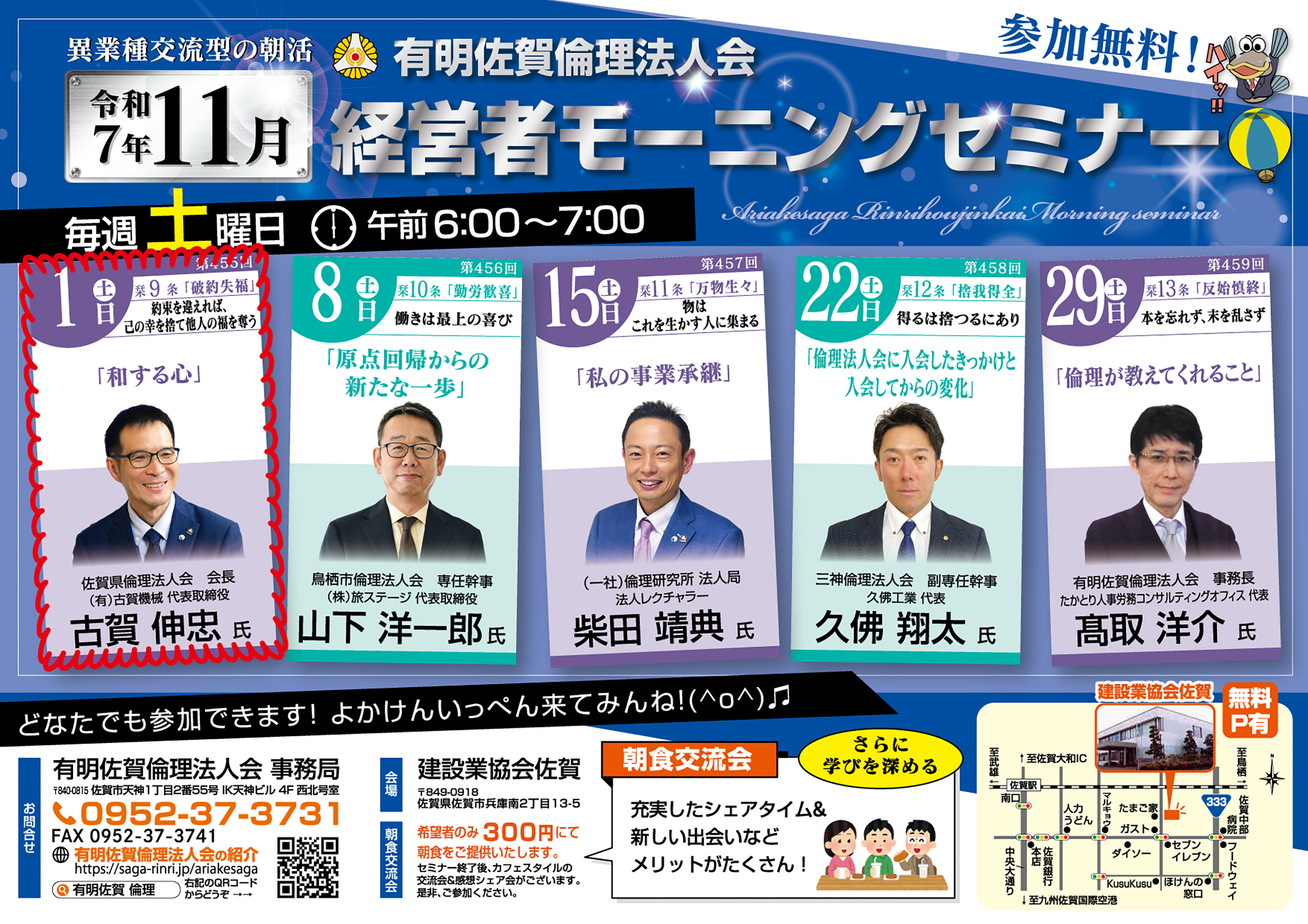 11/1(土)有明佐賀倫理法人会 経営者モーニングセミナーのお知らせ