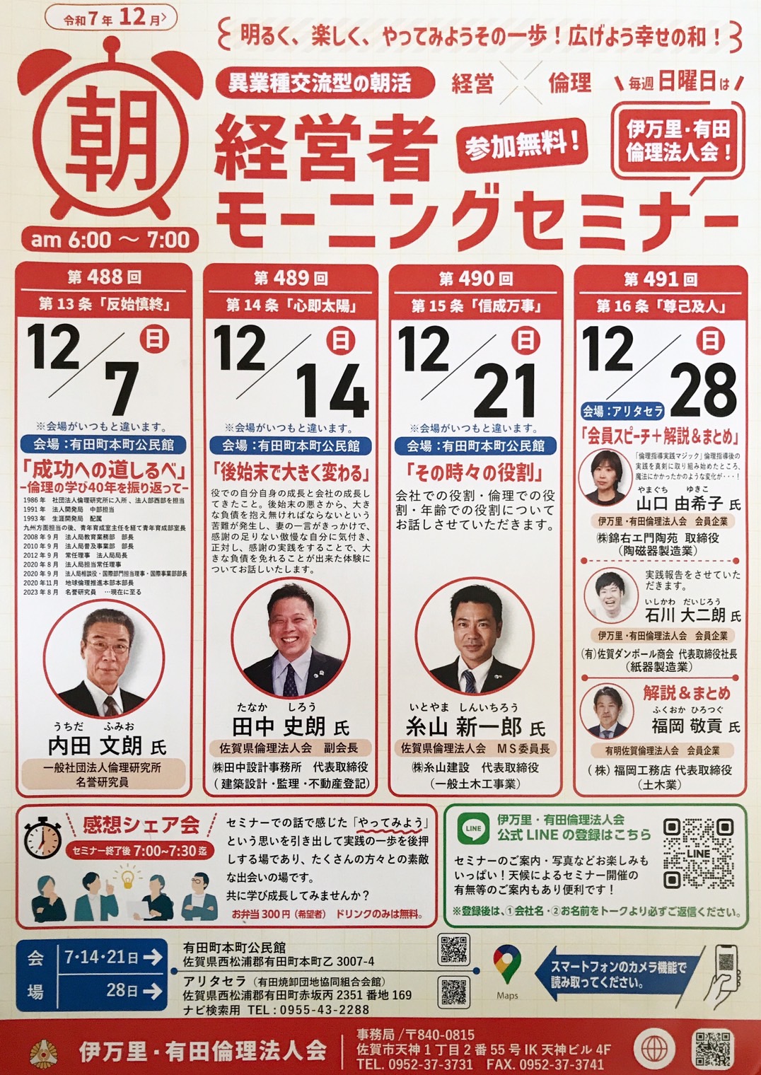 12月伊万里・有田倫理法人会モーニングセミナー予定表