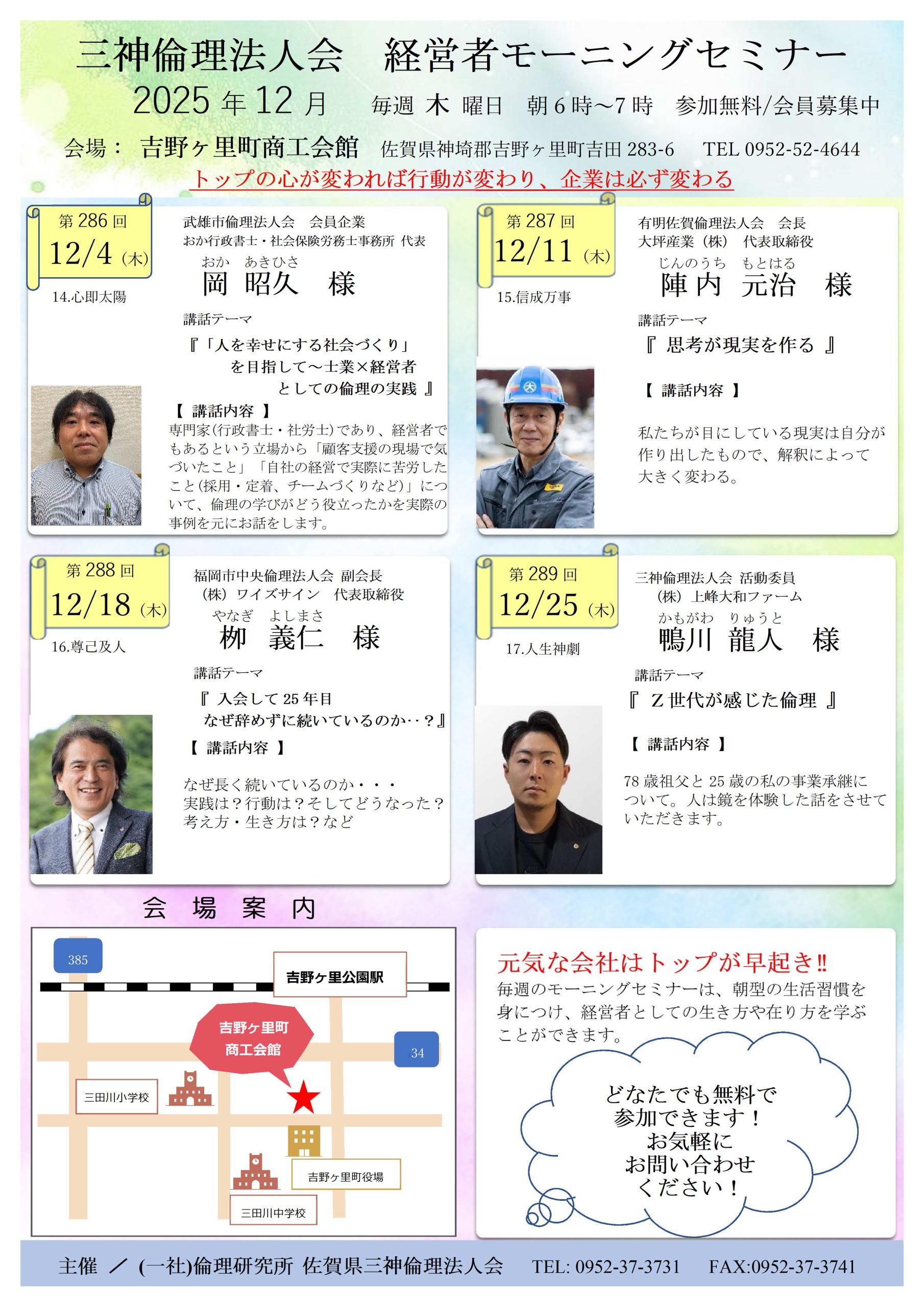 12/6(土)有明佐賀倫理法人会 経営者モーニングセミナーのお知らせ