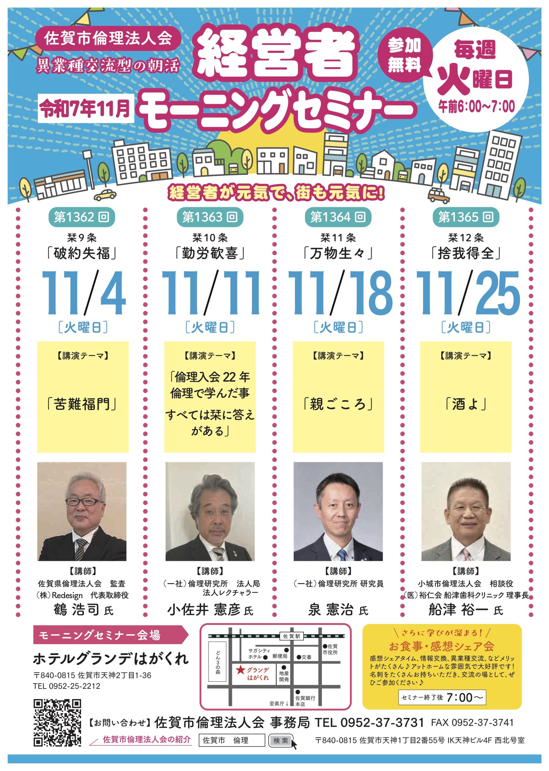 倫理法人会では毎週火曜日朝6時からのモーニングセミナーにそんな悩みを解決するためのヒントが隠されています。朝6時⁉と思われることもあると思いますが、まずは朝起きの実践から始めてみませんか?
